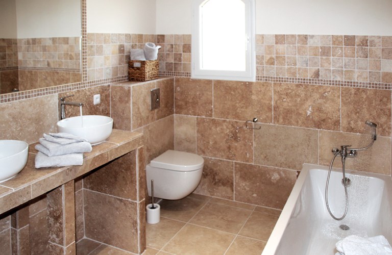 On the living level there are 2 bedrooms with luxury box spring beds (180 x 200) and 2 bathrooms with toilet. The upper level has 2 bedrooms and 2 bathrooms with toilet. Finally, at pool level you will find another 3 bedrooms and 2 bathrooms with toilets. There are also 2 camp beds and 2 high chairs.