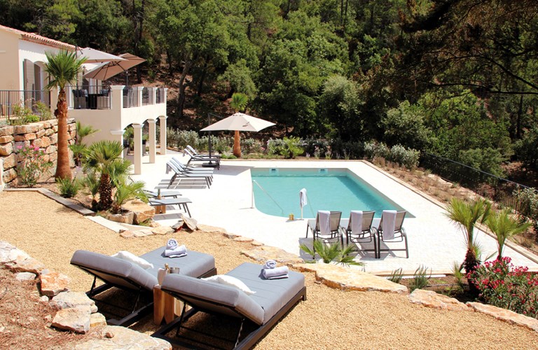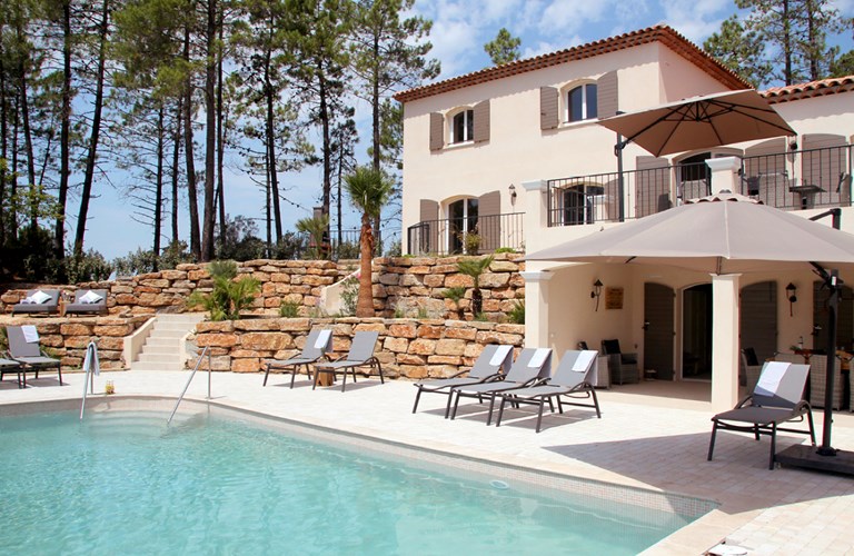 Villa Athos is a newly built villa situated on a secure estate on a very generous plot in the hills between Sainte Maxime and Le Muy. Exclusively surrounded by large plots and villas in a very quiet location, your privacy is guaranteed. The villa offers high living comfort for up to 14 people on approximately 260 m² of living space. Due to the unique layout of bedrooms and spaciousness in general, this villa is ideally suited for a vacation with several families.