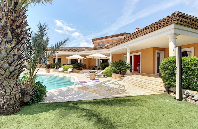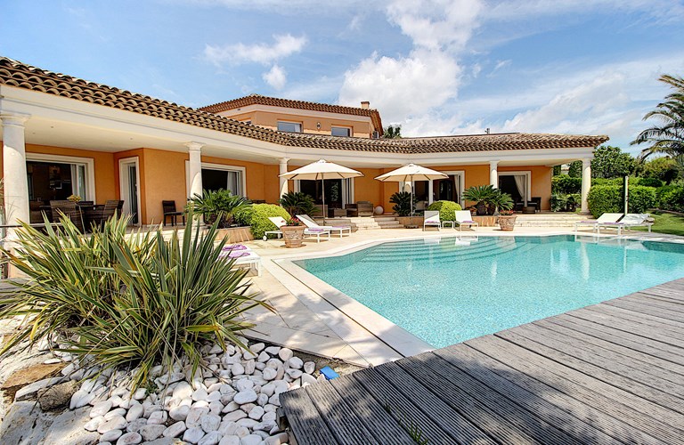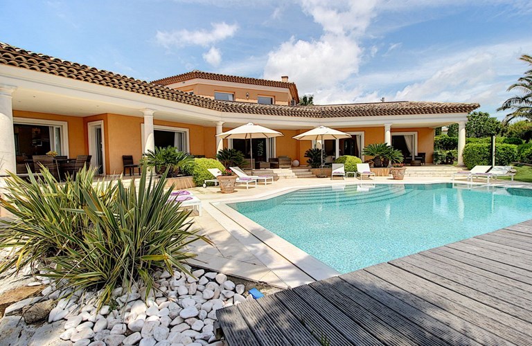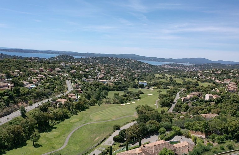 De villa ligt in een goed onderhouden, afgesloten residentie met toegang tot tennisbanen. Het strand en het centrum van Sainte-Maxime zijn binnen drie tot vier minuten rijden bereikbaar. In de directe omgeving vind je winkels, restaurants, strandclubs en diverse watersportmogelijkheden. Vanuit de tuin en terrassen heb je vrij zicht op de golfbaan van Sainte-Maxime, en talloze eetgelegenheden liggen verspreid langs de kust en in het charmante dorpscentrum.