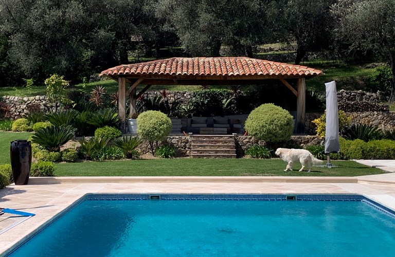 Buiten is het heerlijk dineren onder de veranda met moderne barbecue of relaxen in de comfortabele loungeset in het poolhouse met vrij uitzicht. Het grote verkoelende mozaïek zwembad is de blikvanger en vanuit de heerlijke ligstoelen overziet u de weelderige tuin. Deze leent zich uitstekend voor het maken van een mooie wandeling in de olijfgaard of het spelen van een potje petanque op de speciaal aangelegde baan.