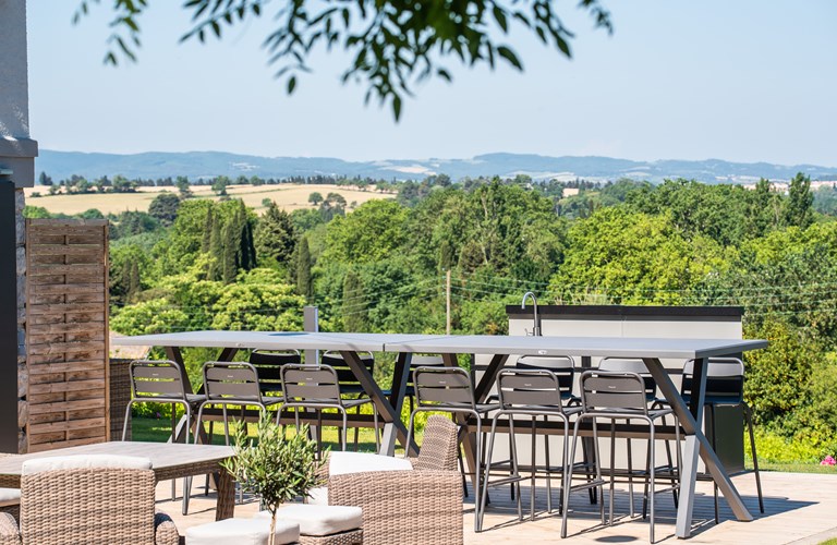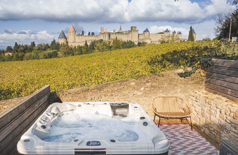 Een van de hoogtepunten van de villa is ongetwijfeld het ruime terras grenzend dat uitkijkt op de middeleeuwse stad Carcassonne. Hier kunnen gasten ontspannen terwijl ze genieten van een glas lokale wijn, omringd door de magie van de oude stad. Het verwarmde privézwembad en de 2 jacuzzi's bieden verkoeling op warme dagen en de royale tuin zorgt voor een rustige en ontspannen sfeer.