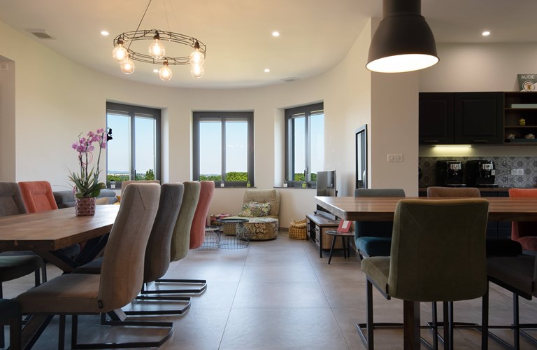 Deze villa heeft een sfeervolle en stijlvolle inrichting, die de perfecte balans tussen comfort en elegantie creëert. De ruime woonkamer is voorzien van comfortabele zitplaatsen en grote ramen die een overvloed aan natuurlijk licht binnenlaten, terwijl ze tegelijkertijd een panoramisch uitzicht bieden op de omliggende middeleeuwse charme. De volledig uitgeruste keuken, met moderne apparatuur en stijlvolle details, is een droom voor kookliefhebbers. De villa beschikt over 6 stijlvol ingerichte slaapkamers elk ontworpen met aandacht voor detail en comfort en met een eigen badkamer met douche. De kamers beschikken over een Kingsize bed en 3 slaapkamers hebben een extra single bed.