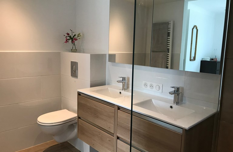 De keuken is modern en compleet ingericht en beschikt o.a. over een magnetron, oven, vaatwasser, hoge koelkast met apart diepvriesvak, kookplaat, koffiezetapparaat en een waterkoker.