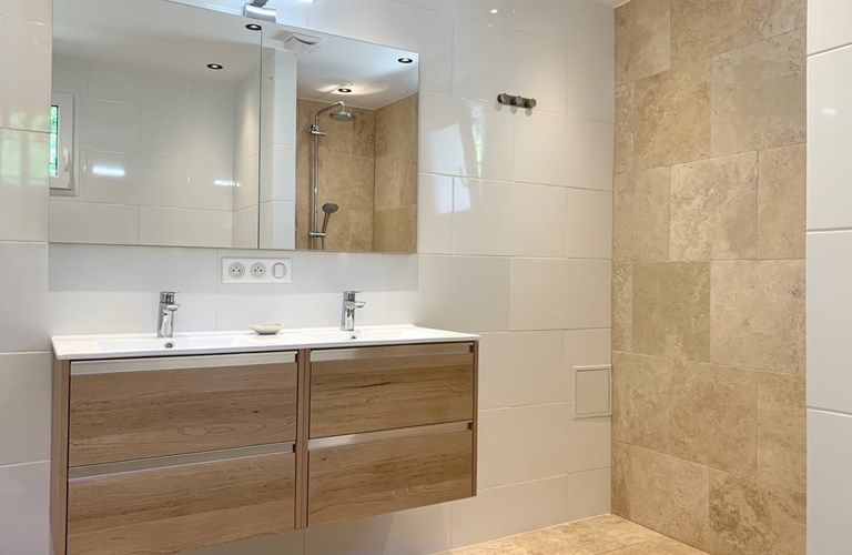 De villa is voorzien van drie slaapkamers en twee badkamers. De master bedroom is voorzien van een luxe en-suite badkamer met dubbele wastafel en walk-in douche en een kingsize bed (180x200). De 2e slaapkamer heeft eveneens een kingsize bed en deelt de badkamer (voorzien van bad, douche en dubbele wastafel) met de 3e slaapkamer welke beschikt over twee éénpersoonsbedden (80x200).