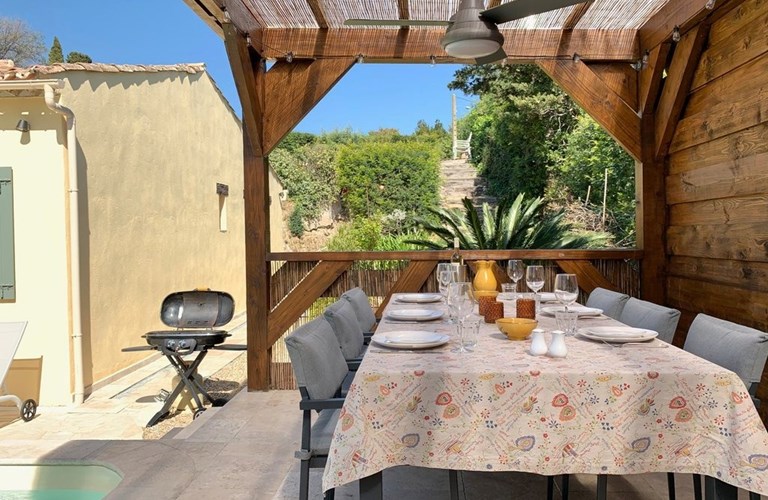 Het (in voor- en naseizoen) verwarmbare privé zwembad is rechthoekig van vorm met een afmeting van 7 x 3 m en een maximale diepte van 1.5 m. Op het terras naast het zwembad bevinden zich vier ligbedden. Een heerlijke plek waar u ongetwijfeld veel tijd zult doorbrengen, is het overdekte terras bij het zwembad. Hier staat een loungeset en een eettafel voor 6 personen. Hier staat ook de gas barbecue en heeft u prachtig zicht op het middeleeuwse kasteel van Grimaud.
