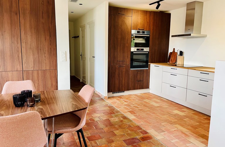 De benedenverdieping bevindt op tuinhoogte waar u ook het rechthoekige privé zwembad vindt met een afmeting van 8 x 5 m en een maximale diepte van 1.5 m. Het zwembad is verwarmbaar in het voor- en naseizoen en voorzien van een elektrische cover. Op het terras naast het zwembad staan verschillende ligbedden en zitjes en een grote eettafel. Er is een buitenkeuken met koelkast, vaatwasser en een gasbarbecue. Op de begane grond bevinden zich de drie losse appartementen die ieder individueel toegankelijk zijn: “Pool apartment”: luxe appartement met kwalitatief kingsize bed, eigen zithoek, badkamer en een kitchenette met eethoek. Het appartement heeft een overdekt terras en airconditioning. “La Gîte”: idem als bovenstaand en met een eigen privé-terras. “Garden suite”: luxe slaapkamer met badkamer met ligbad, airconditioning en overdekt terras. De kitchenettes zijn uitgerust met inductie kookplaat, vaatwasser, oven, Nespresso en kookgerei. Tevens is er een algemene wasruimte met wasmachine, droger, stofzuiger, strijkplank en strijkijzer. Villa Leopard is te boeken voor maximaal 8 personen.