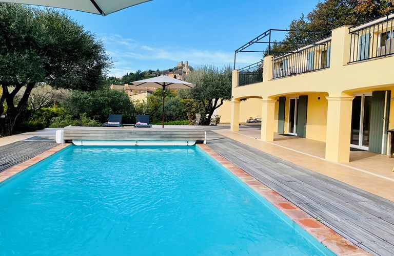 Villa Leopard is een recent gerenoveerde en modern ingerichte villa op wandelafstand van het schilderachtige Middeleeuwse dorp Grimaud en op 6 km van de zandstranden van de Golf van Saint-Tropez. Vanaf de terrassen heeft u een prachtig uitzicht over de omgeving en op het middeleeuwse kasteel van Grimaud.