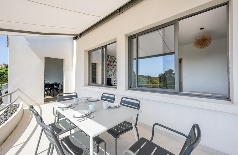 Wanneer u de villa verlaat, komt u in een ruime privétuin met tuinmeubelen en een barbecue. Deze buitenruimte is perfect voor gezellige buitenmaaltijden en ontspanning in de frisse lucht. Het omheinde perceel biedt een veilige omgeving voor kinderen om te spelen, terwijl het balkon en het terras extra mogelijkheden bieden om van de zon te genieten.